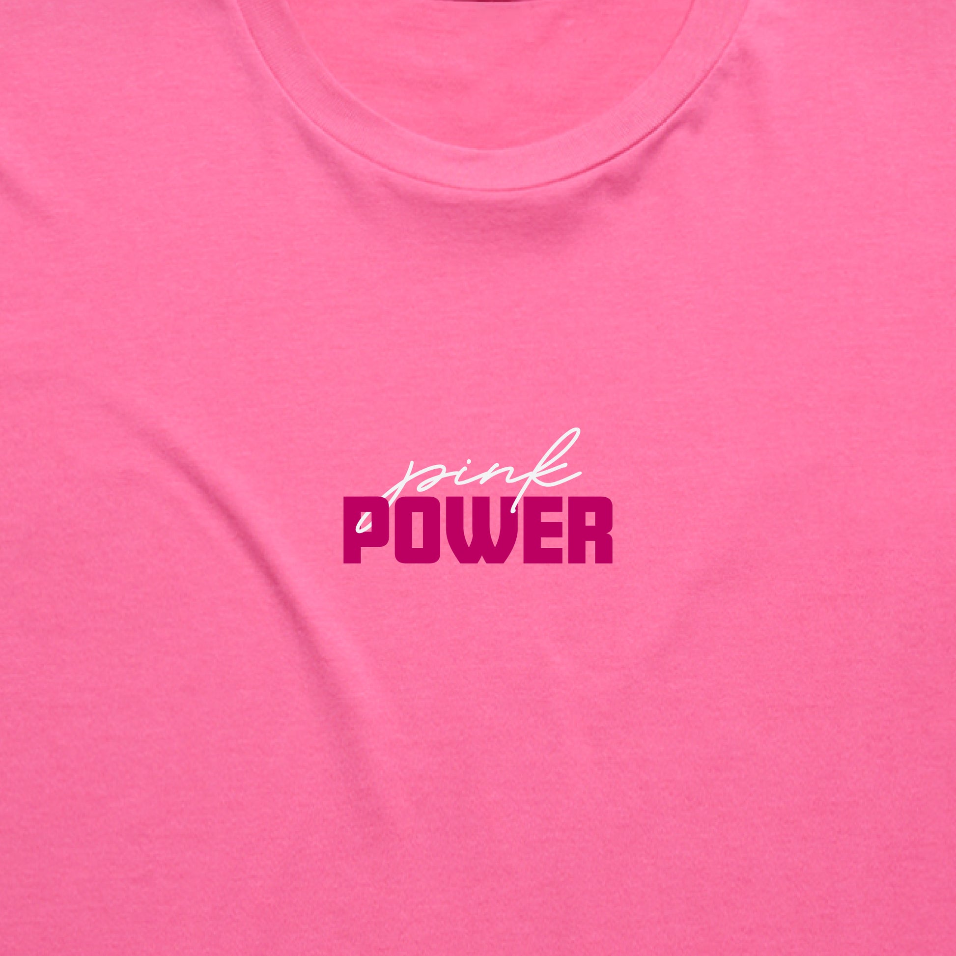 Pink Power transfer print design on our lighter weight quality tee.